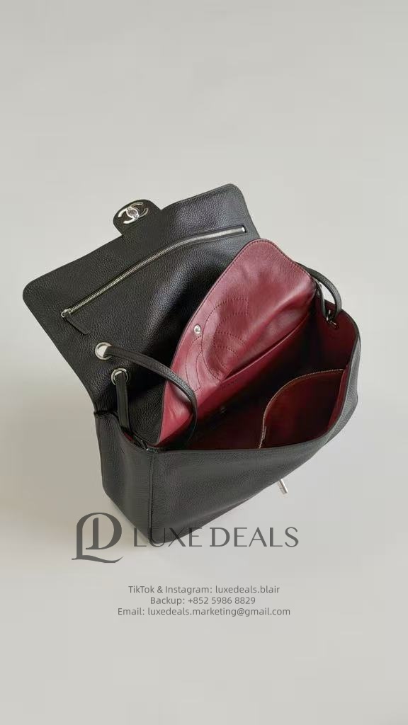 Chanel Maxi flap bag , Black Grained calfskin (15*32*10cm)